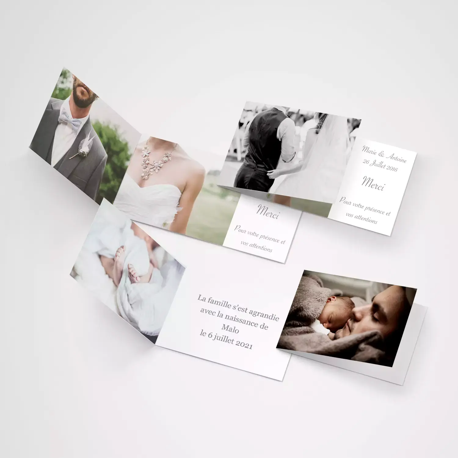 Envoyez un message personnalisé plein d'émotions à votre famille et vos amis ! Peu importe l'occasion : naissance, mariage, anniversaire, baptême, voeux, remerciements.... Accompagnez vos messages de photos pleines de souvenirs inoubliables. Avec nos cartes personnalisées personne ne restera indifférent.
